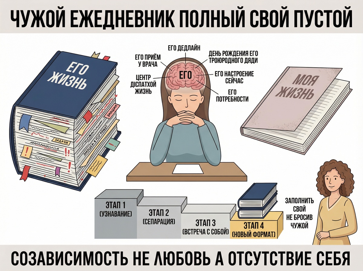 Созависимость – это не просто нежелательная привычка, это настоящая пробле-ма, когда вы забываете о себе, отказываясь от заботы о собственных желаниях ради других. Важно понимать, что подобная динамика отношений требует не просто воли для изменения, а осознанного подхода через конкретные этапы.