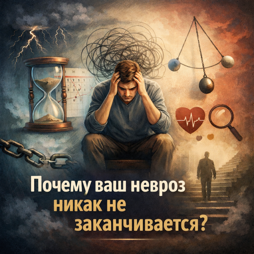 Многие люди, столкнувшиеся с тревожными расстройствами, задаются вопросом: "Почему это продолжается так долго?" Невроз может не проявляться как быстрый кризис, а как медленный процесс с периодами ремиссий и обострений. Постепенно невроз превращается в устойчивую систему реакций, в которой стресс и привычные ответы взаимосвязаны.