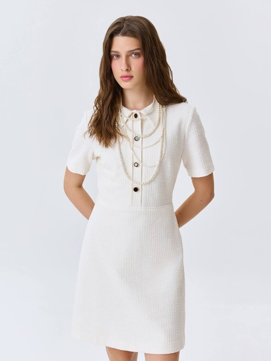 Новая коллекция представляeт собой стильные и элегантные варианты, идеально подходящие для этого важного события. Особенно выделяется платье в нежных тонах, выполненное в стиле CHANEL, которое вдохновляет на романтические встречи и праздники.