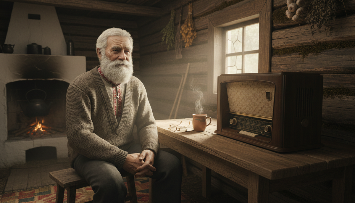 Он выключил радио, и тишина окутала его. Слышно было только, как в углу поскрипывает половица от холода, а ветер шуршит снегом за окном, словно уговаривая его остаться. Старик устроился на печи, укрываясь овчинным тулупом, и долго смотрел в потолок. Он знал: завтра в шесть утра тихий щелчок радиопередачи вновь скрасит его одиночество. Диктор скажет «Доброе утро!», и Иван Степанович ответит: он не один. Пока звучит радио, жизнь в заснеженной ижемской деревне продолжается.