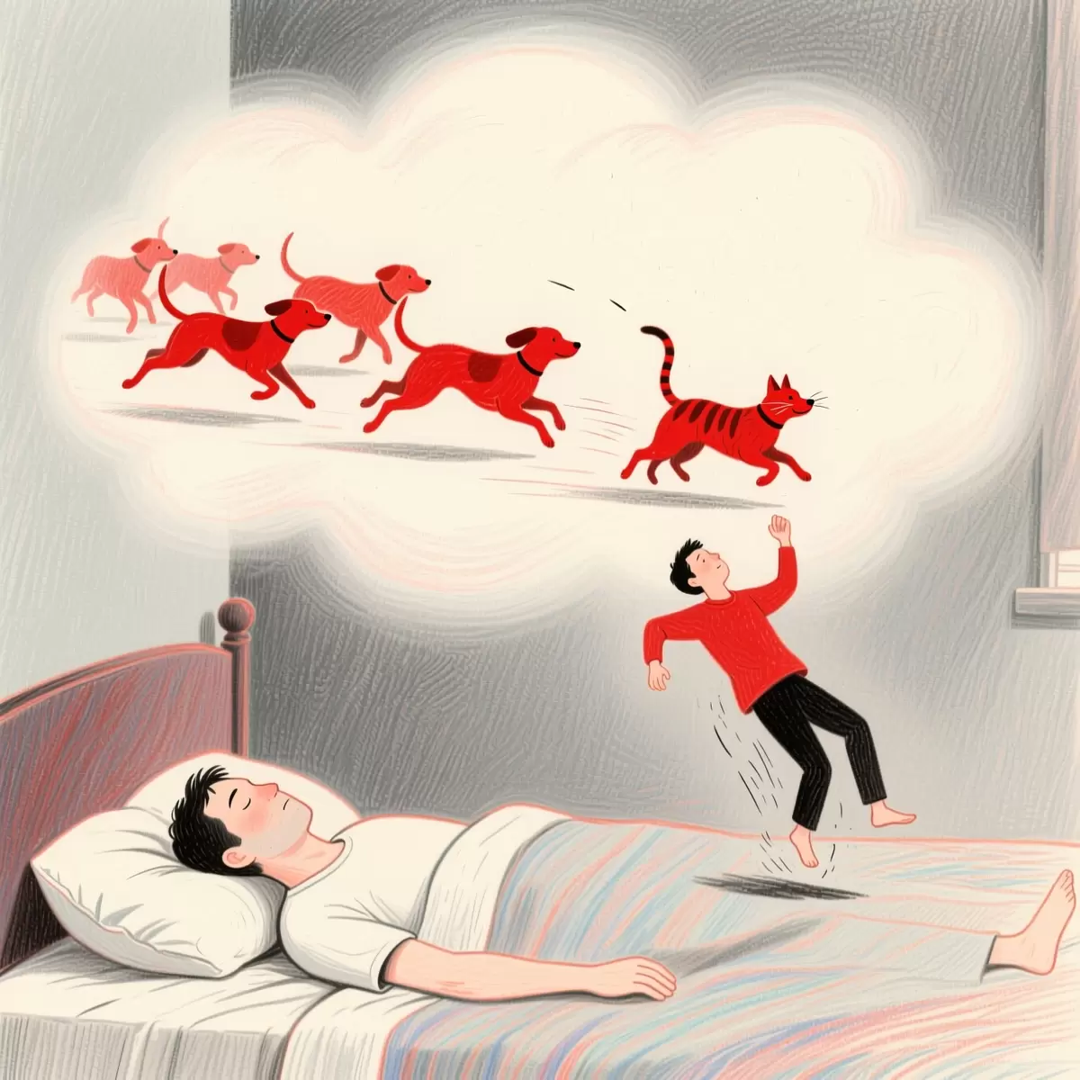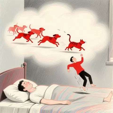 Светлый и загадочный мир сновидений иногда приносит необычные образы, способные заставить задуматься. Вот интересный случай, когда Антон увидел в своем сне стаю ярко-красных собак, которые гнались за кошкой, а затем сбили его с ног — но он удивил всех, упав... вверх!