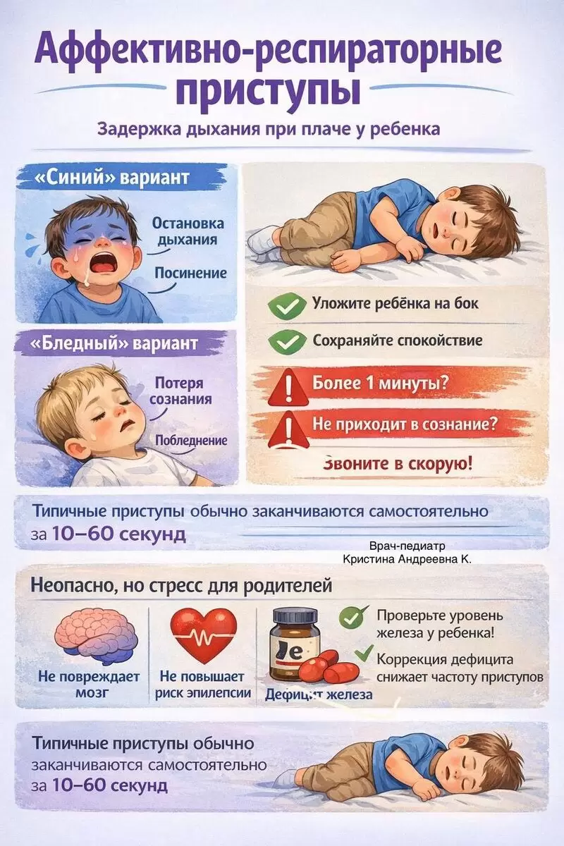 Аффективно-респираторные приступы (АРП) — это распространенное и, как правило, безопасное состояние у детей младшего возраста. Эти эпизоды чаще всего наблюдаются у малышей в возрасте от 6 месяцев до 5 лет, достигая пика на 1-2 году жизни.