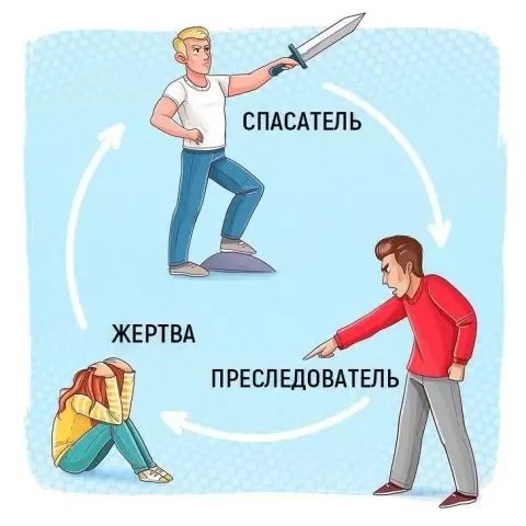 Созависимость представляет собой сложный феномен, включающий в себя треугольник Карпмана, состоящий из трех деструктивных ролей: Спасатель, Преследователь и Жертва.